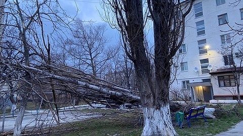 Целую ночь спасатели выезжали на обращения жителей. Они пилили деревья, укрепляли оконные рамы, убирали заваленные заборы. Сейчас специалисты разбирают крыши.