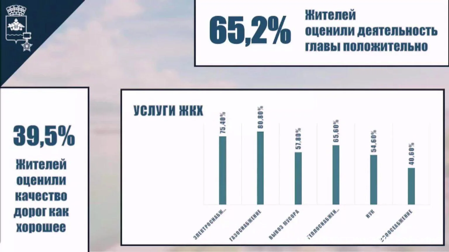 - Теплоснабжение: 65,6% положительных оценок.