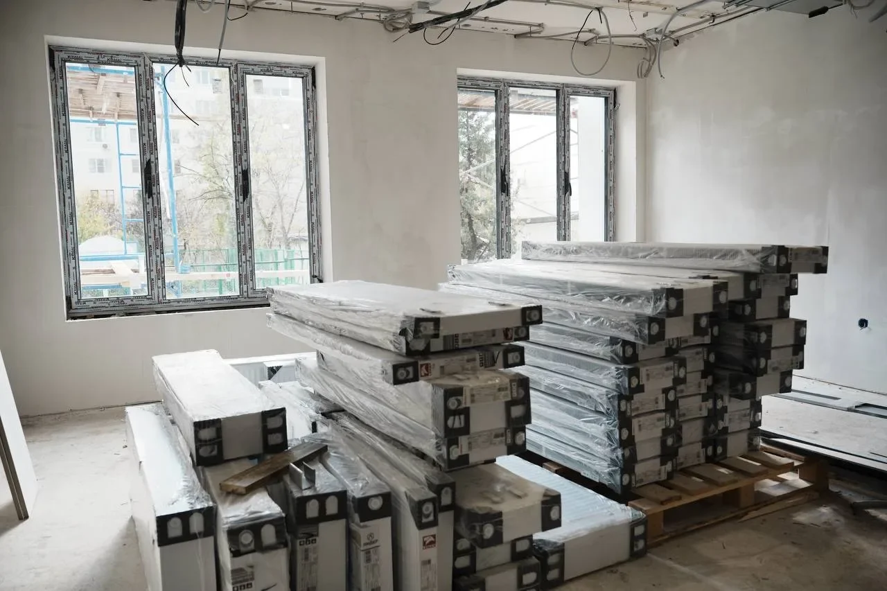 На объекте уже полностью разобрали старые внутренние конструкции, почти закончили с фасадом. Сейчас рабочие монтируют электропроводку, слаботочные сети, системы отопления, водоснабжения и канализации. Установлены новые окна, сделаны внутренние перегородки и отремонтирована крыша.