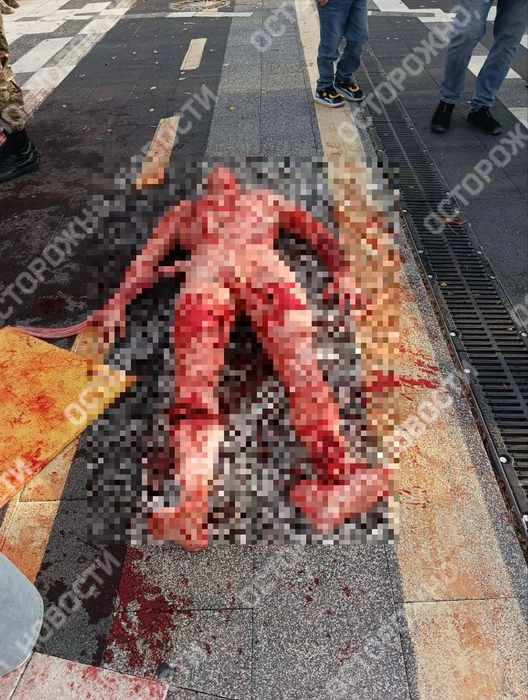 Макет человека с оторванной ногой и следами искусственной крови вызвал активное обсуждение в соцсетях.