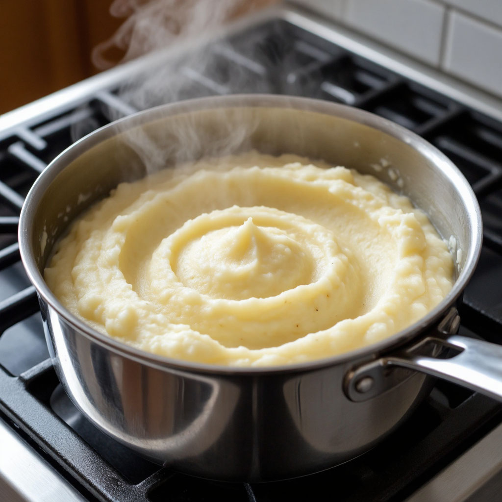 Отвар содержит крахмал, который помогает создать стабильную эмульсию. Без резкого контраста температур (горячий картофель + холодное молоко) пюре приобретает однородную воздушную структуру.
