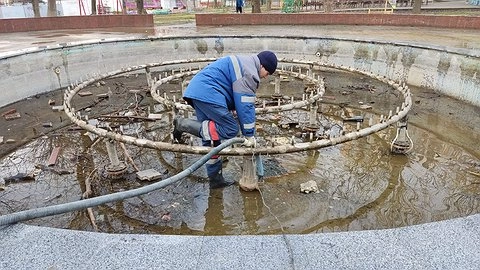 В марте 2022 года специалисты «Центра благоустройства» приступили к подготовке фонтанов к расконсервации. За зиму были отремонтированы насосы, фильтры, подсветка, коммуникации и гидравлика. С приходом тепла специалисты регулируют форсунки.