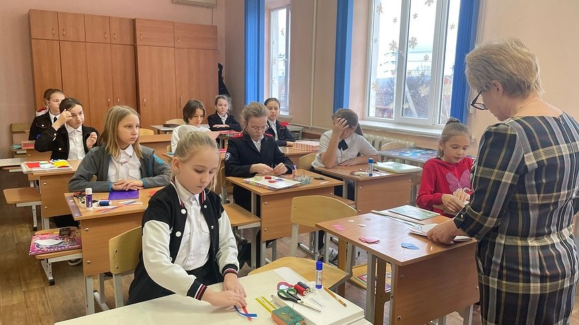Для воспитанников школ искусств проводят уроки, на которых они создают открытки для бойцов СВО. Один из таких провела Галина Максименко - преподаватель Детской школы искусств станицы Раевской. Такие уроки проводят в преддверие Дня защитника Отечества.