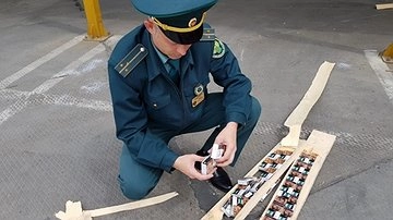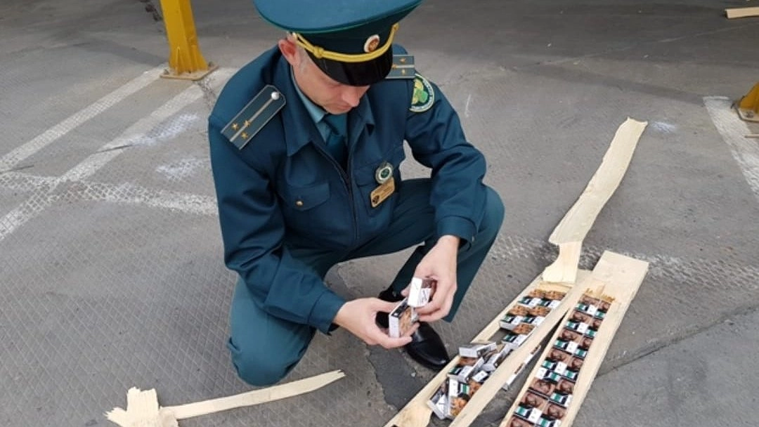 Во время таможенного контроля в Новороссийске внутри трехметровых обрезных досок по всей длине были обнаружены тайники с 160 тысячами пачек сигарет, произведенных в Республике Беларусь и маркированных специальными акцизными марками страны происхождения.