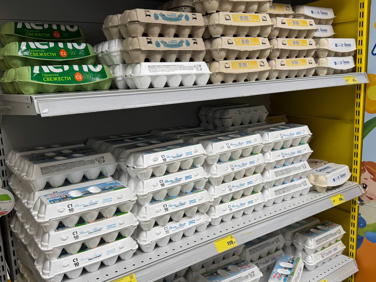 Стоимость куриных яиц в России продолжает расти.