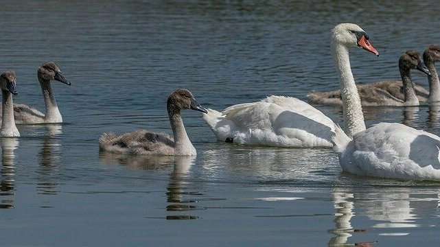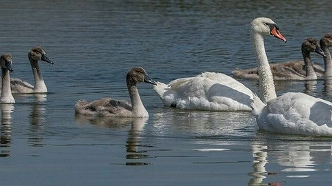 С начала февраля в Новороссийске появилась семья лебедей. К маю, пара шипунов порадовала появлением пяти лебедят.