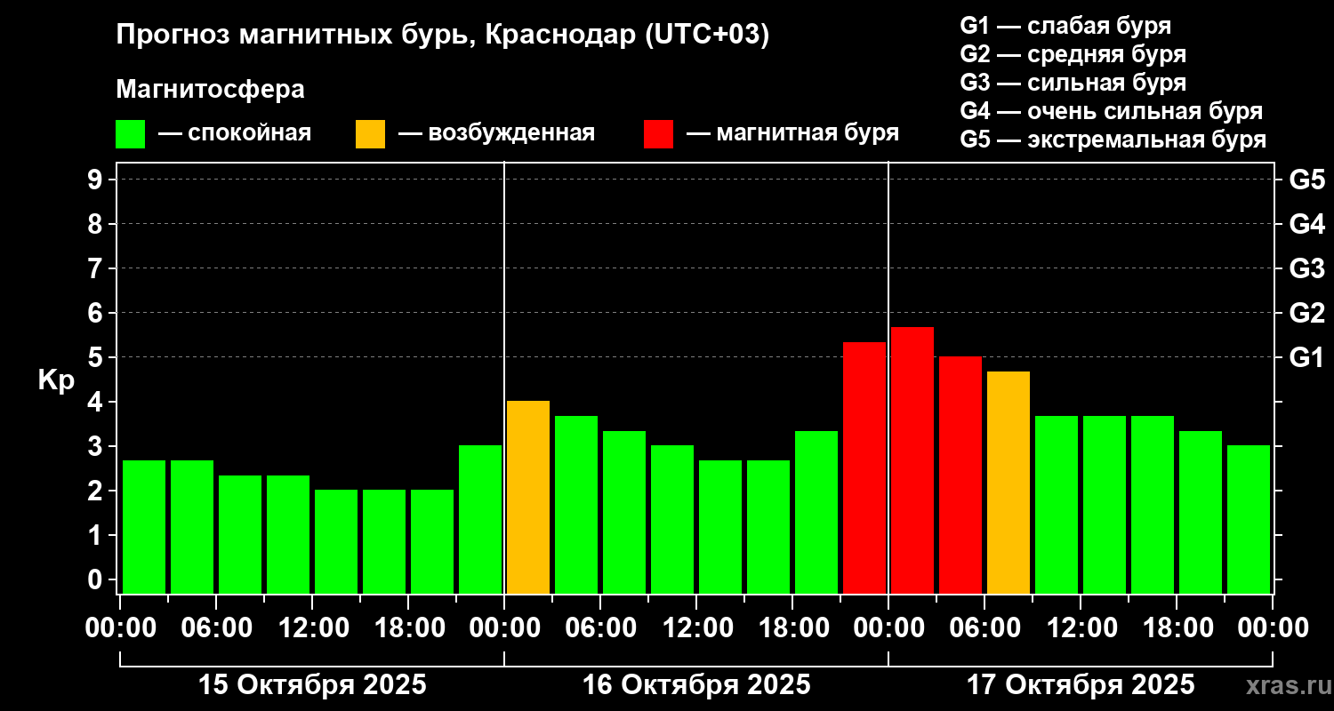 В Краснодарском крае 16 и 17 октября ожидается средняя по силе магнитная буря.