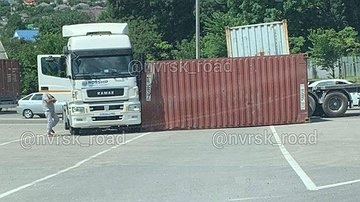 В Телеграм-канале @nvrsk_road появилось видео, на котором запечатлен момент аварии. Случившееся попало в объектив видеорегистратора «Газели», которая ехала по встречке. Водитель едва успел увернуться от падающих на проезжую часть контейнеров.
