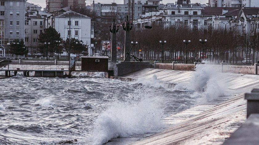 Сегодня ожидается северо-восточный ветер 25-30 метров в секунду, скорость порывов ураганного норд-оста будет достигать 35-38 метров в секунду. Кроме того, прогнозируется парение моря и волны высотой 15-30 дм.