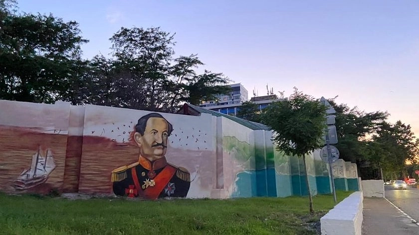 Уже можно наблюдать, как бетонное ограждение приобретает новые черты. По задумке авторов, в центральной части будет располагаться портрет адмирала Серебрякова — одного из основателей Новороссийска, слева от него историческая панорама бухты, а справа – уже современная. В дальнейшем добавят QR-код со ссылкой на исторические материалы.