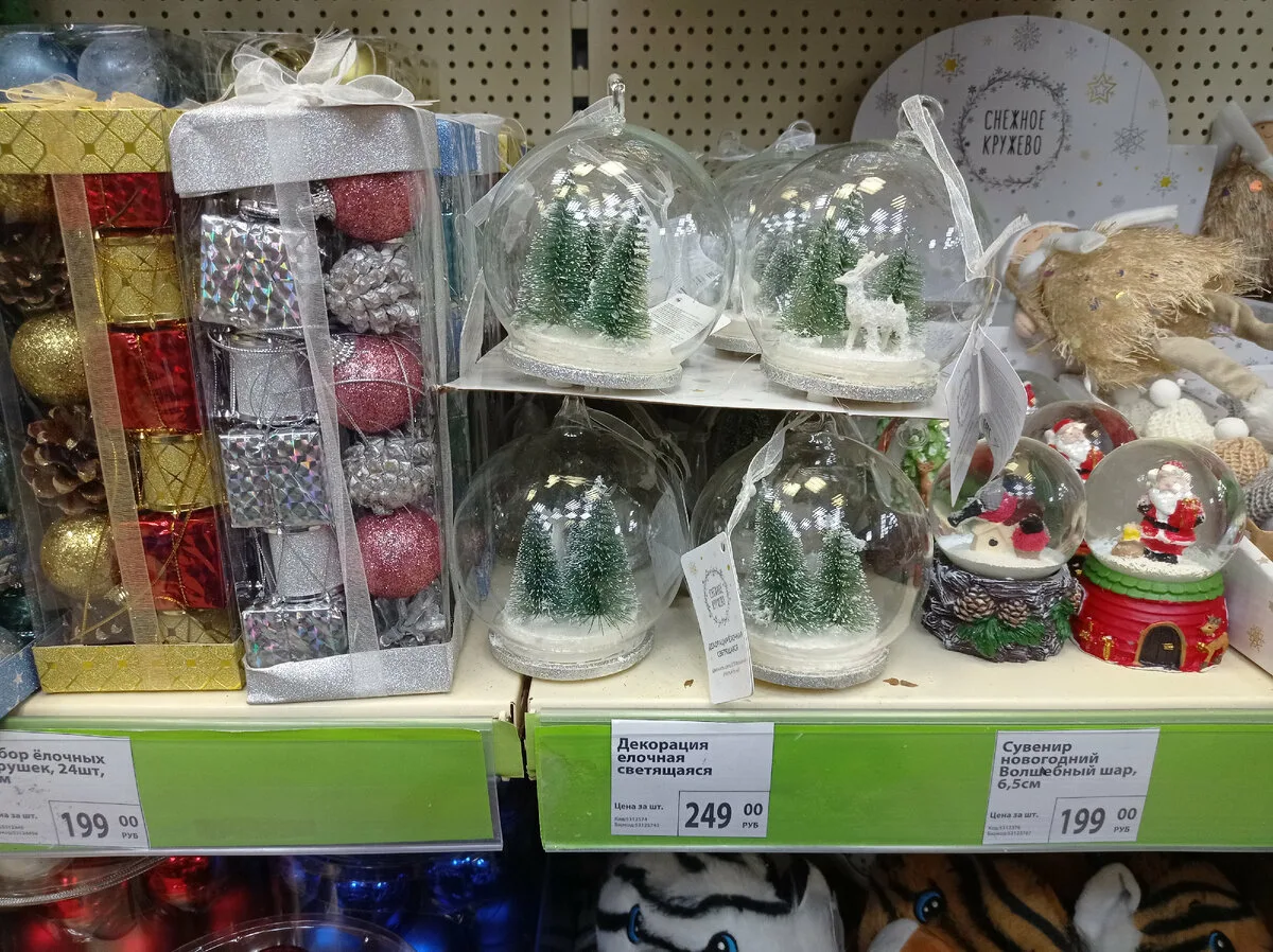 Полки пестрят гирляндами, елочными шарами и тематическими украшениями, а среди праздничного ассортимента можно найти как декоративные элементы, так и практичные товары для дома.