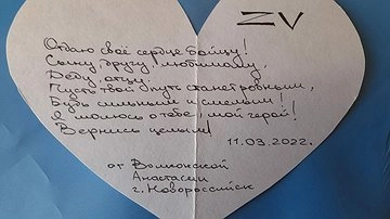 В марте 2022 года в Новороссийске прошла акция поддержки «От сердца к сердцу». Как сообщают в управлении культуры, дети и взрослые сложили лист бумаги пополам и вырезали сердца, на которых написали свои послания российским бойцам.