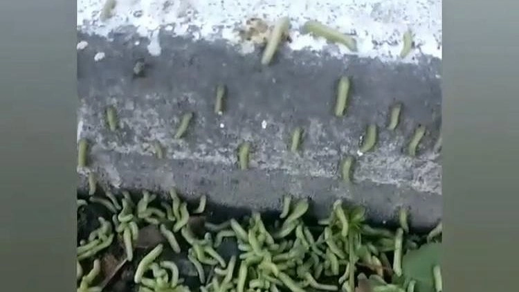 Горожане сняли происходящее на видео и поделились им на телеграм-канале "Супер новости Новороссийска". На кадрах видно, что гусеницы кишат не только на зеленых зонах, но они также выползают на дорогу к автомобилям.
