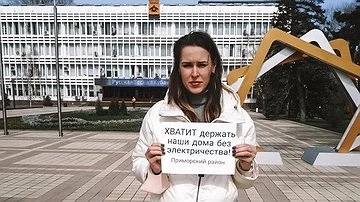 В понедельник, 21 марта 2022 года, к зданию администрации Новороссийска пришла местная жительница и устроила одиночный пикет . Она требовала наладить подачу электричества в дома Приморского района — об этом было написано на принесенной женщиной табличке.