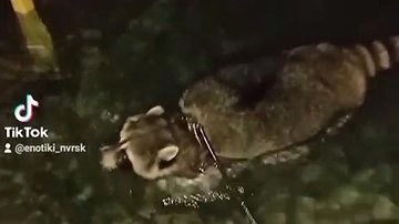 Судя по видео, на берегу енот ведет себя не очень решительно. Зато едва зайдя в воду чувствует себя «как рыба в воде». Кстати, недавно Паша встретился с самым популярным енотом страны Темой, когда тот был на гастролях в Новороссийске.