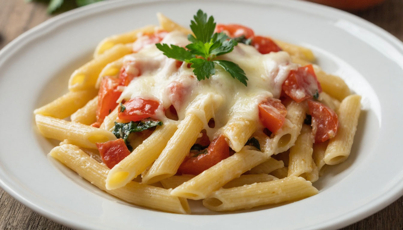 Казалось бы, макароны — это скучно. Но хитрость здесь в соусе. Вернее, в его отсутствии. Соус родится сам, прямо в духовке. Сыр расплавится, помидоры лопнут и отдадут сок, шпинат превратится в нежную зелень. Вам даже не нужно стоять у плиты и выпаривать сливки или колдовать над сковородой.