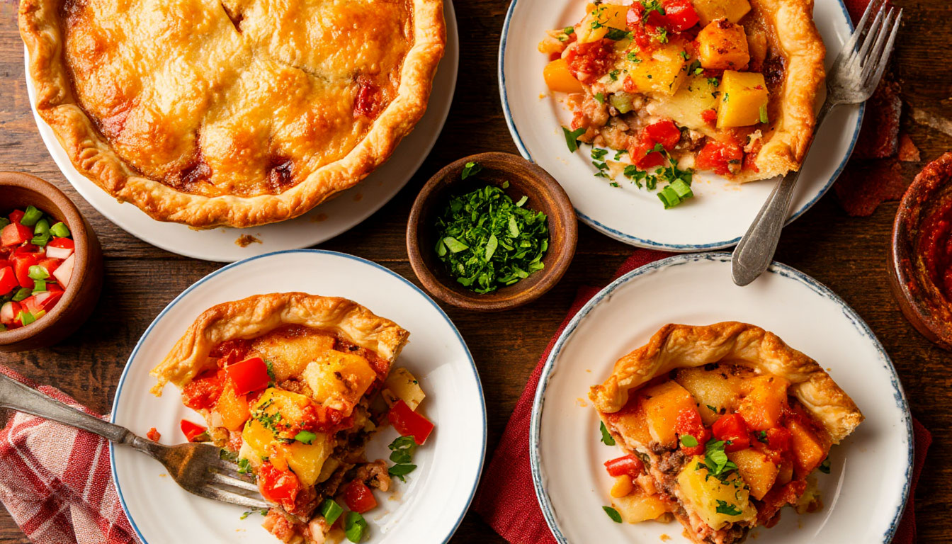 Основа — свежие овощи, которые не нужно предварительно обжаривать. Они пропекаются прямо в тесте, сохраняя свой натуральный вкус, сочность и аромат. Комбинация кабачка, перца и лука создает идеальный баланс: нежность, легкая сладость и пикантность.