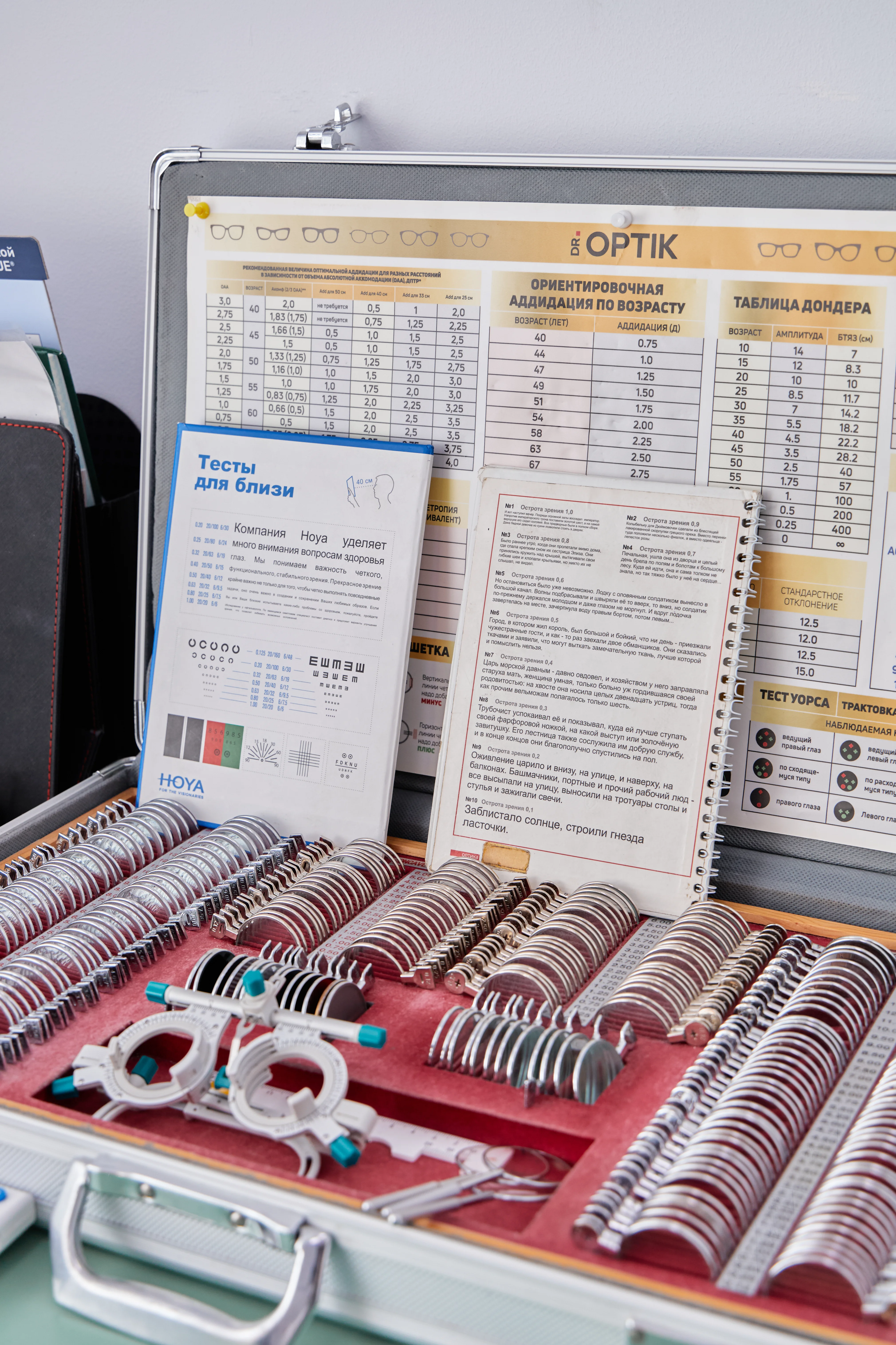 В салонах Dr.Optik проверка зрения — это не просто таблица с буквами. Специалисты проводят полноценную диагностику из 20 этапов: оценивают работу глазодвигательных мышц, определяют ведущий глаз и межцентровое расстояние с помощью диоптриметра. Это позволяет не просто проверить остроту зрения, а подобрать параметры с учётом ваших индивидуальных особенностей и образа жизни.