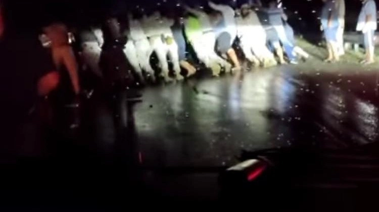 Тогда неравнодушные люди стали выходить из своих автомобилей и вручную толкать грузовик. Спустя время им все-таки удалось освободить проезд.