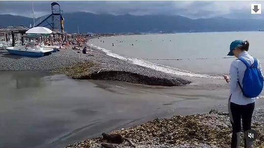 Свидетели могучего потока с длинным шлейфом, уходящим в море, запечатлели проран на видео.