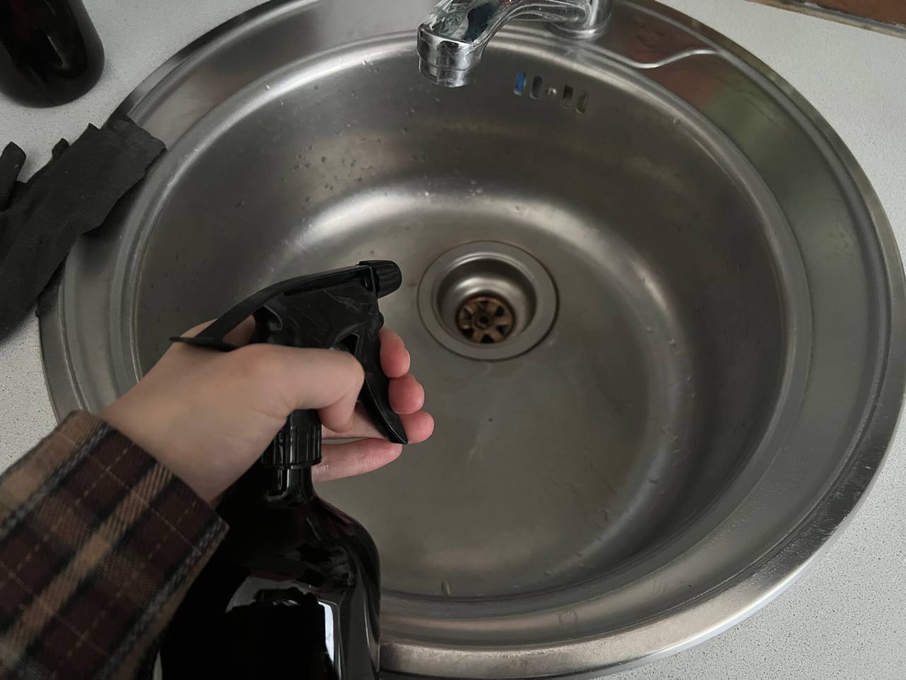 - Равномерно обработайте всю поверхность мойки и смесителя