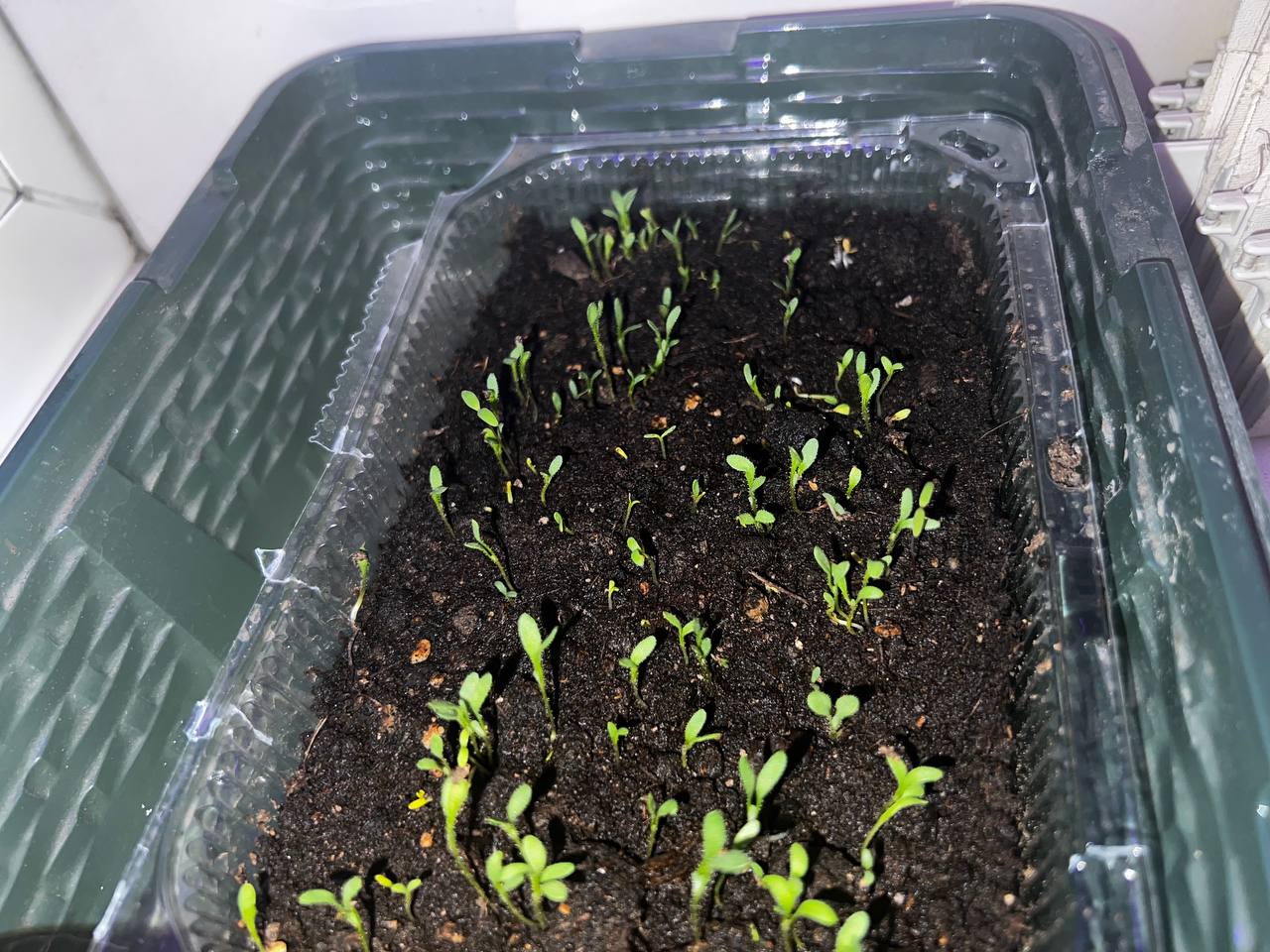 Звучит как колдовство, но работает безотказно. После полива, когда вода ушла, слегка присыпаем поверхность грунта вокруг всходов сухой землей. Можно использовать тот же грунт, что и для посева, просеянный.