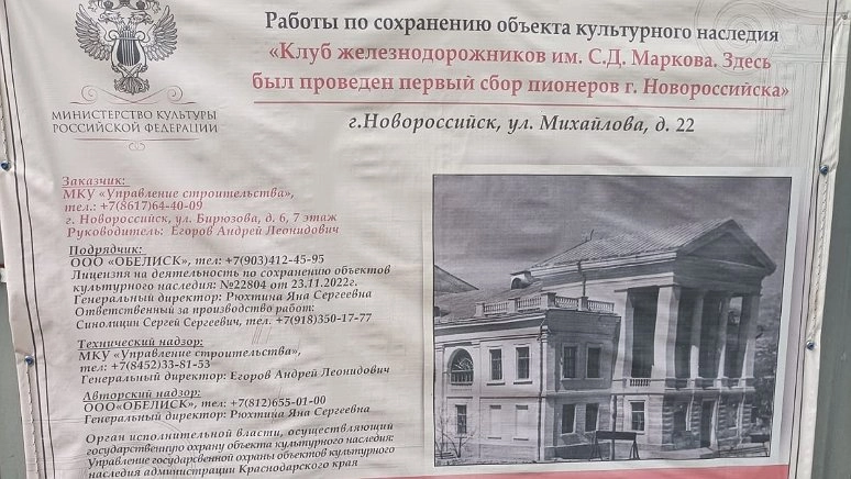 Реставрация знаменитого клуба железнодорожников имени Маркова в Новороссийске, ожидаемая горожанами несколько лет, столкнулась с новыми сложностями.