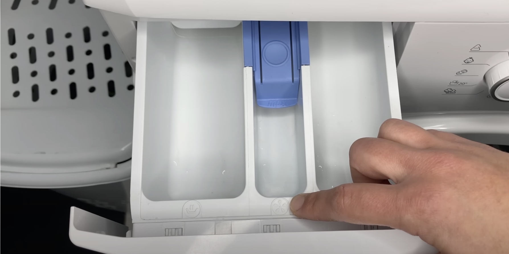 - В отсек для кондиционера влейте ½ стакана столового уксуса (9%)