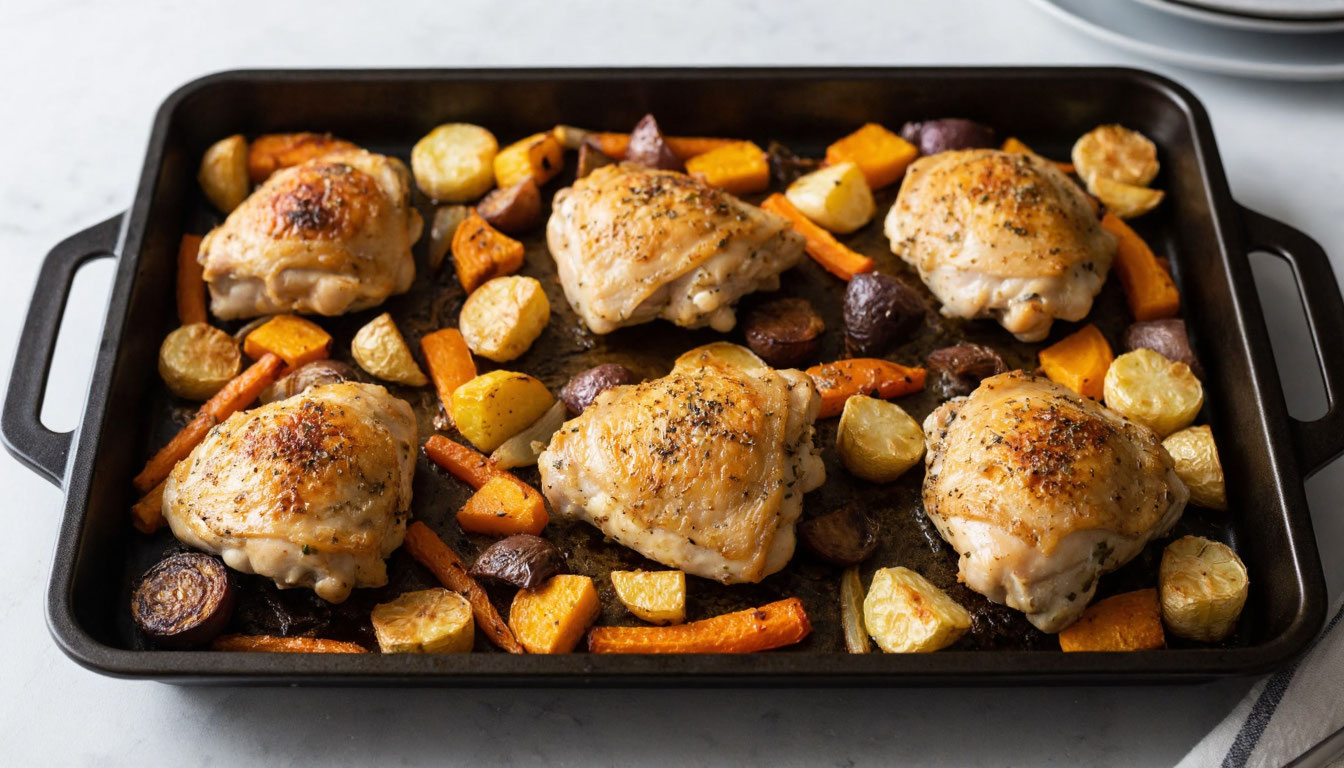Готовить подвиг на кухне не хочется, а кормить семью чем-то полезным — надо. Знакомо? Тогда этот рецепт — ваше тайное оружие. Никаких лишних кастрюль, никакого стояния у плиты, только духовка и минимум телодвижений. Результат же такой, что семья готова облизать тарелки и просить добавки. Как из скучных куриных бедер и овощей сделать хит сезона? Читайте скорее, пока рецепт не потерялся.