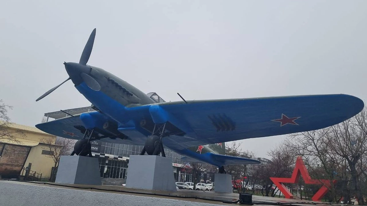 Штурмовик участвовал в боях за Малую Землю. В 1943 году его сбили, самолет упал в море, где пролежал более 30 лет. Когда стало известно о его исторической ценности, легендарный штурмовик подняли со дна и установили на пересечении проспекта Ленина и улицы Героев Десантников.