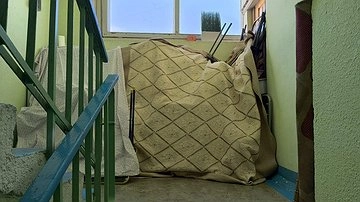 Корреспондент, побывавший в квартире во время ремонта, увидел, что две комнаты наглухо закрыты, а половина кухни завалена вещами. В единственной доступной комнате оставалась лишь узкая тропинка к радиатору. Балкон был забит под завязку, полностью перекрыв естественный свет.