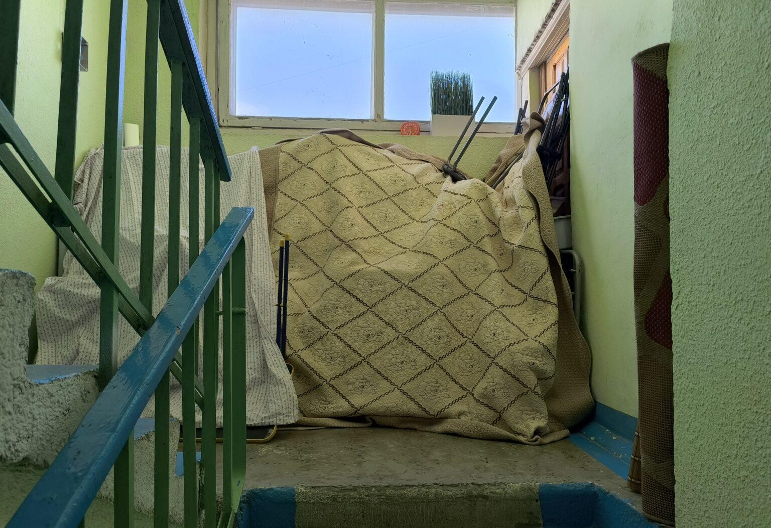 Проблема усугубляется тем, что вещи хранятся и на лестничной клетке, что нарушает правила пожарной безопасности. За это предусмотрены штрафы.
