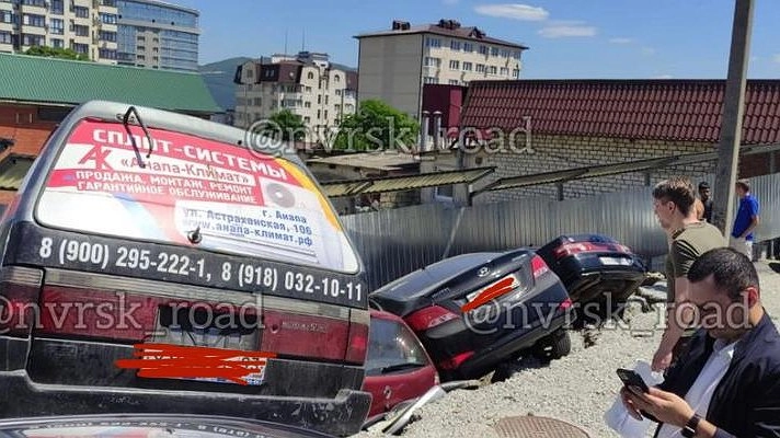 Сегодня, 27 мая 2021 года, в центре Новороссийска произошло ЧП. Напротив Горбольницы просел грунт, из-за чего четыре машины провалились под землю.