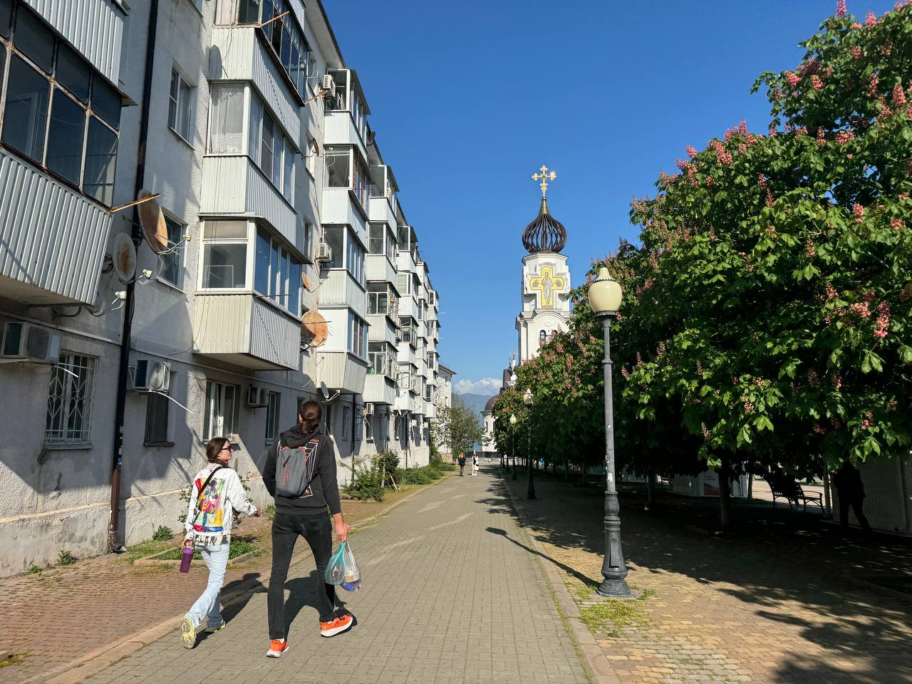 Все это время часть газонов была огорожена сигнальной лентой, а на земле лежали мешки со строительными материалами, создавая ощущение временного хаоса.