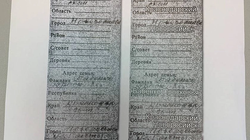 «Бабенко Петр Иванович, красноармеец 250 мсп 82 мсд. 1920 г. рождения, г. Новороссийск Краснодарского края, погиб в бою 3 ноября 1941 г. в д. Ляхово и до настоящего времени числился захороненным в братской могиле в д. Дубки Кубинского с/п Одинцовского района», - рассказали в Новороссийком центре поисковых работ.