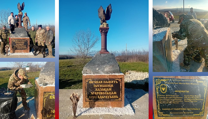 На территории исторического форта Раевский завершили монтаж памятного знака — дань уважения казакам-добровольцам, ушедшим на фронт в составе бригады «Кубань» и не вернувшимся с полей специальной военной операции.