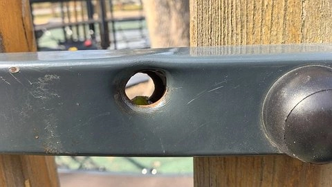 В социальных сетях появилось фото, на котором видно круглое отверстие в металлическом элементе ограждения детской площадки в парке имени Фрунзе. Житель Новороссийска предположил, что это может быть след от пули крупнокалиберного пулемета. По его мнению, данное отверстие появилось в результате атаки украинских дронов, которая произошла в мае прошлого года.