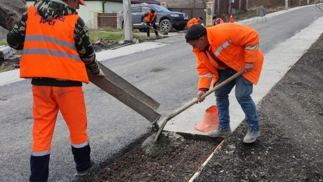 Здесь дорожники устанавливают бордюр по улице Золотаревского, 4, по улице Видова, 135-137 и по Мысхакскому шоссе, 57. Также на улице Ленина в районе съезда к торговому центру начали ямочный ремонт. На этом участке убрали просадки и заменили основание.