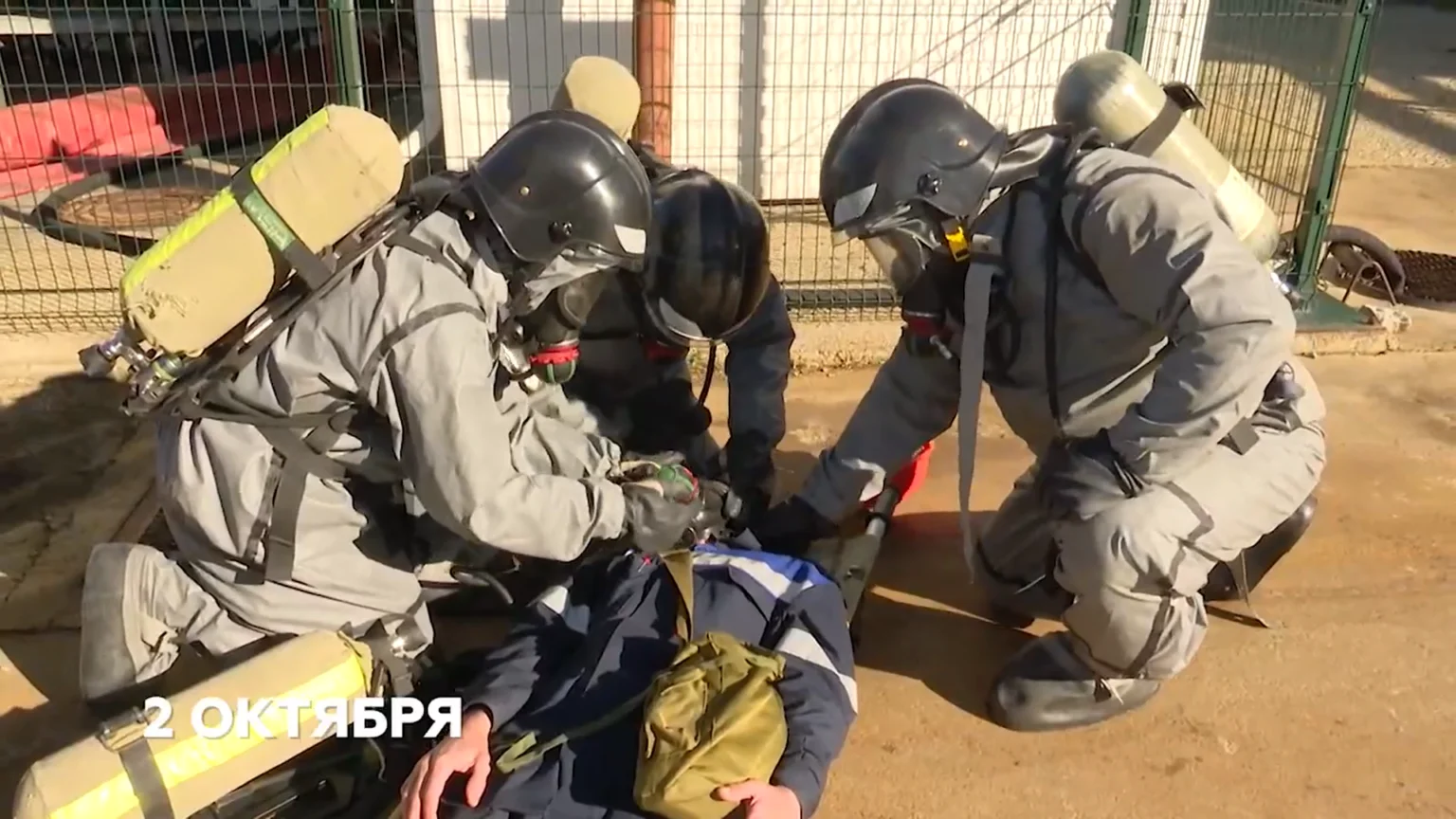 Ключевым элементом учений стала ликвидация последствий условной утечки хлора. Сценарий предполагал, что в результате атаки беспилотников произошла разгерметизация баллонов с опасным химическим веществом.