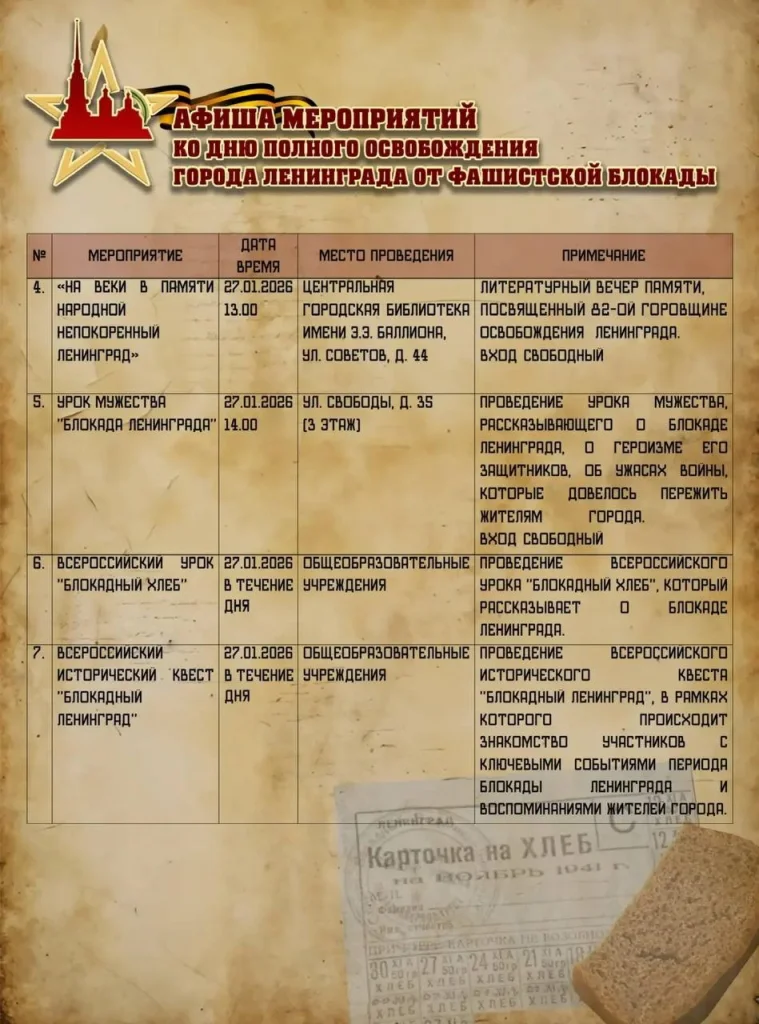 Для школьников в этот день пройдут Всероссийский урок и исторический квест «Блокадный Ленинград».